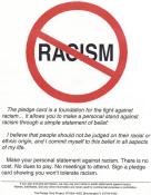 Left: Bloomington's pledge card implores signers to stand against racism by pledging not to judge people by their racial origin.Right: Fort Collins, CO, employs its pledge to address hate by courageously preserving each person's dignity, as well as basic civil rights.