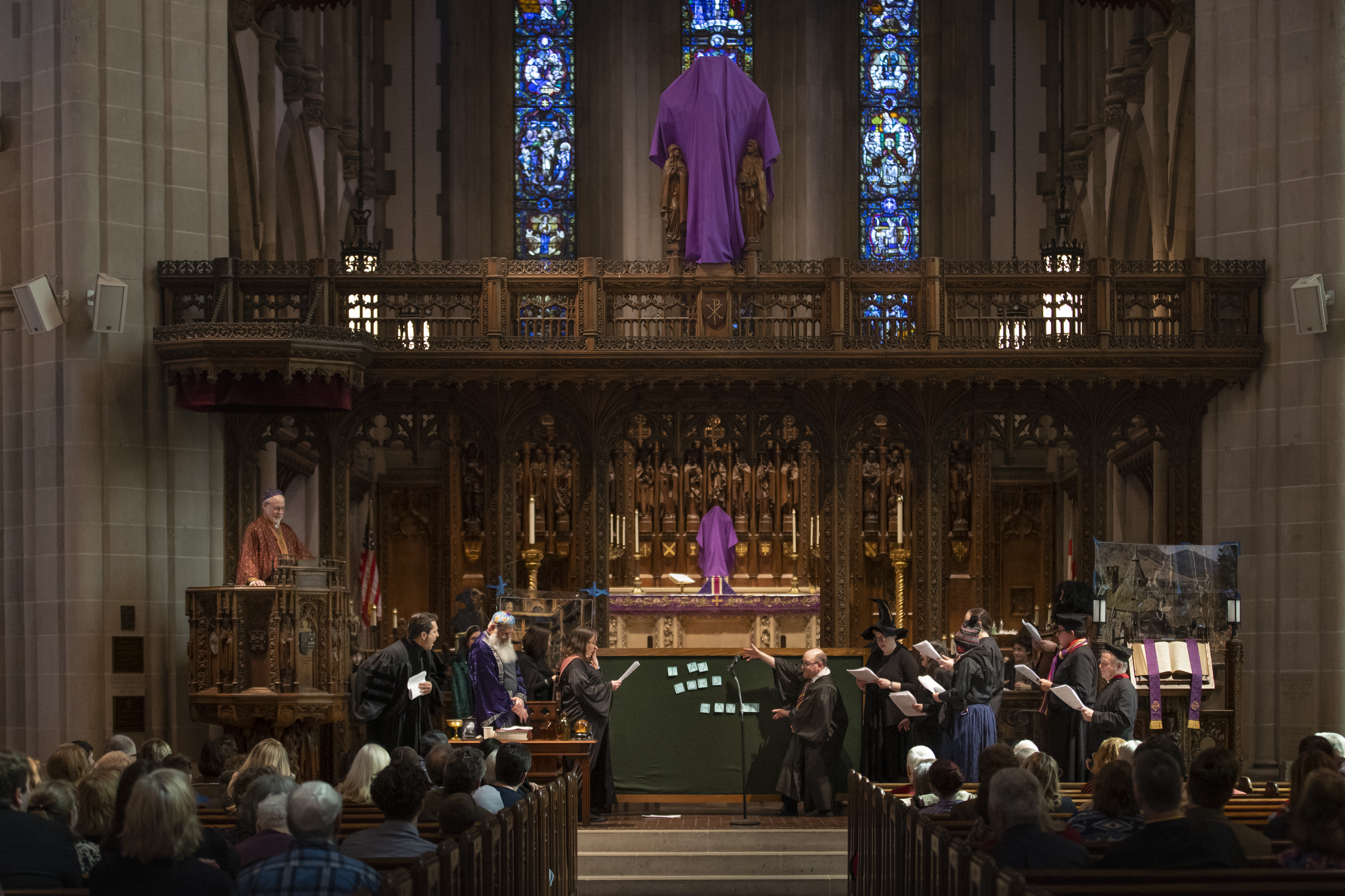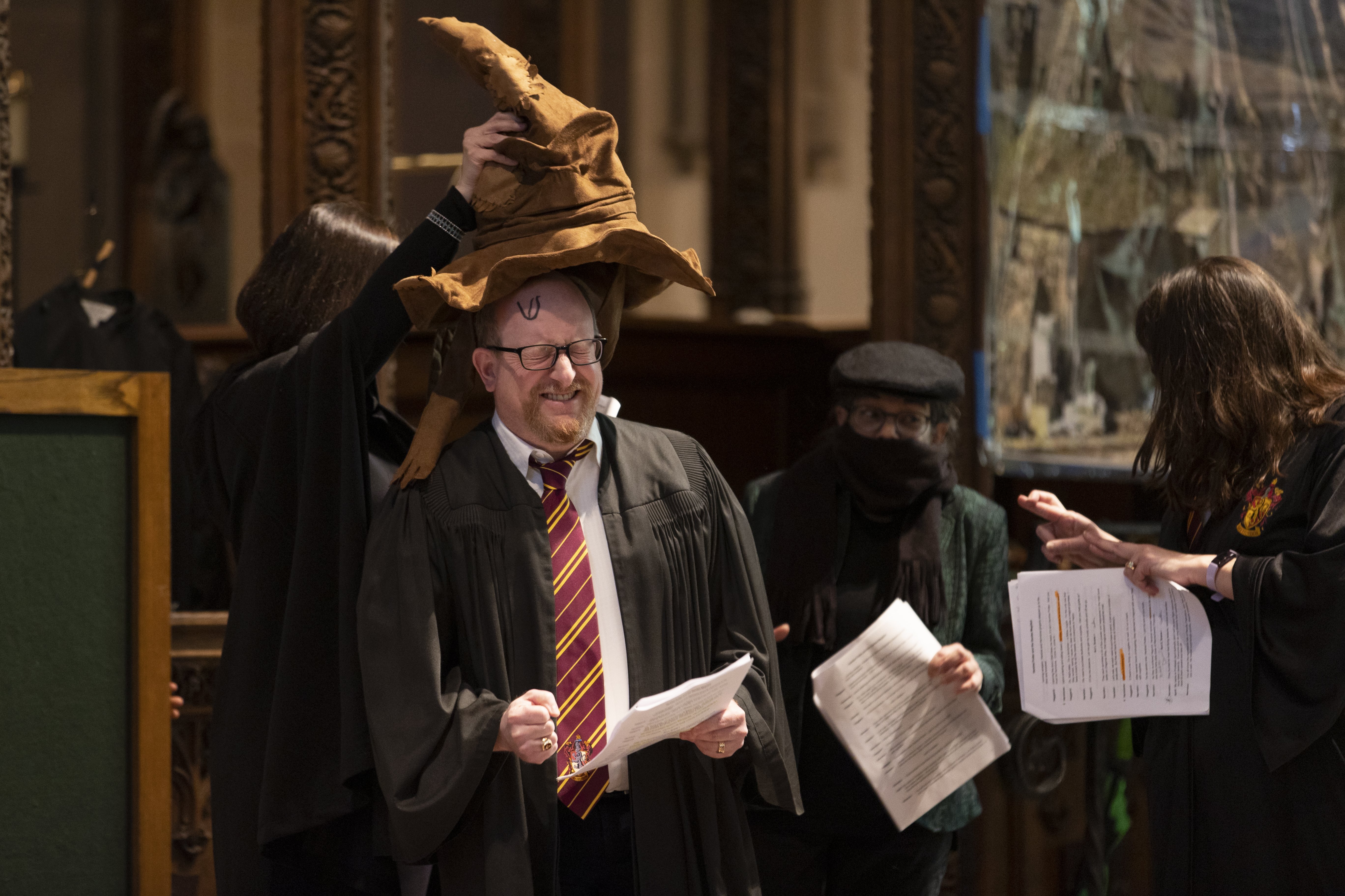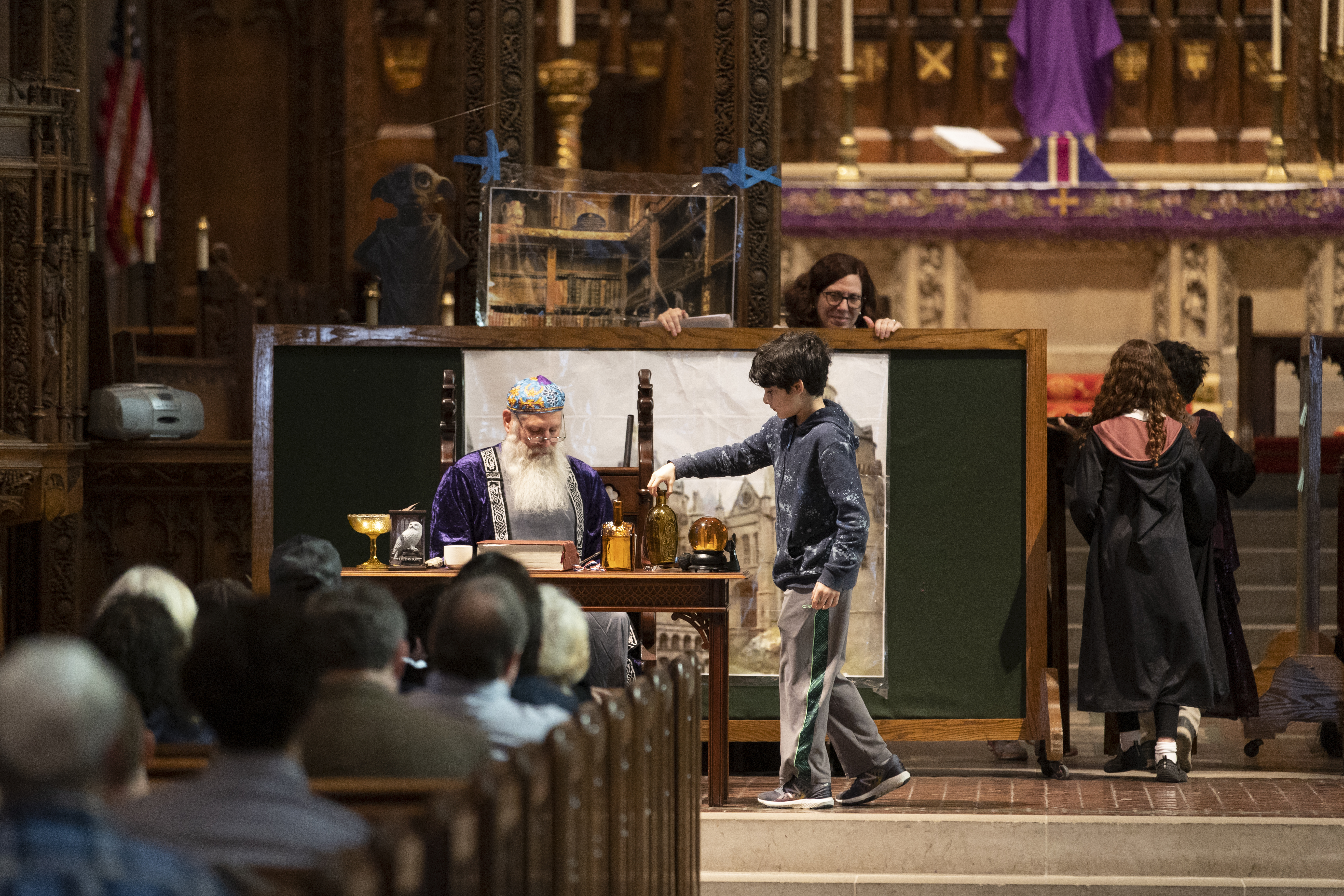 Members of Rodef Shalom and the Tree of Life congregations perform a Harry Potter-themed Purim play at Calvary Episcopal Church on March 8, 2020.