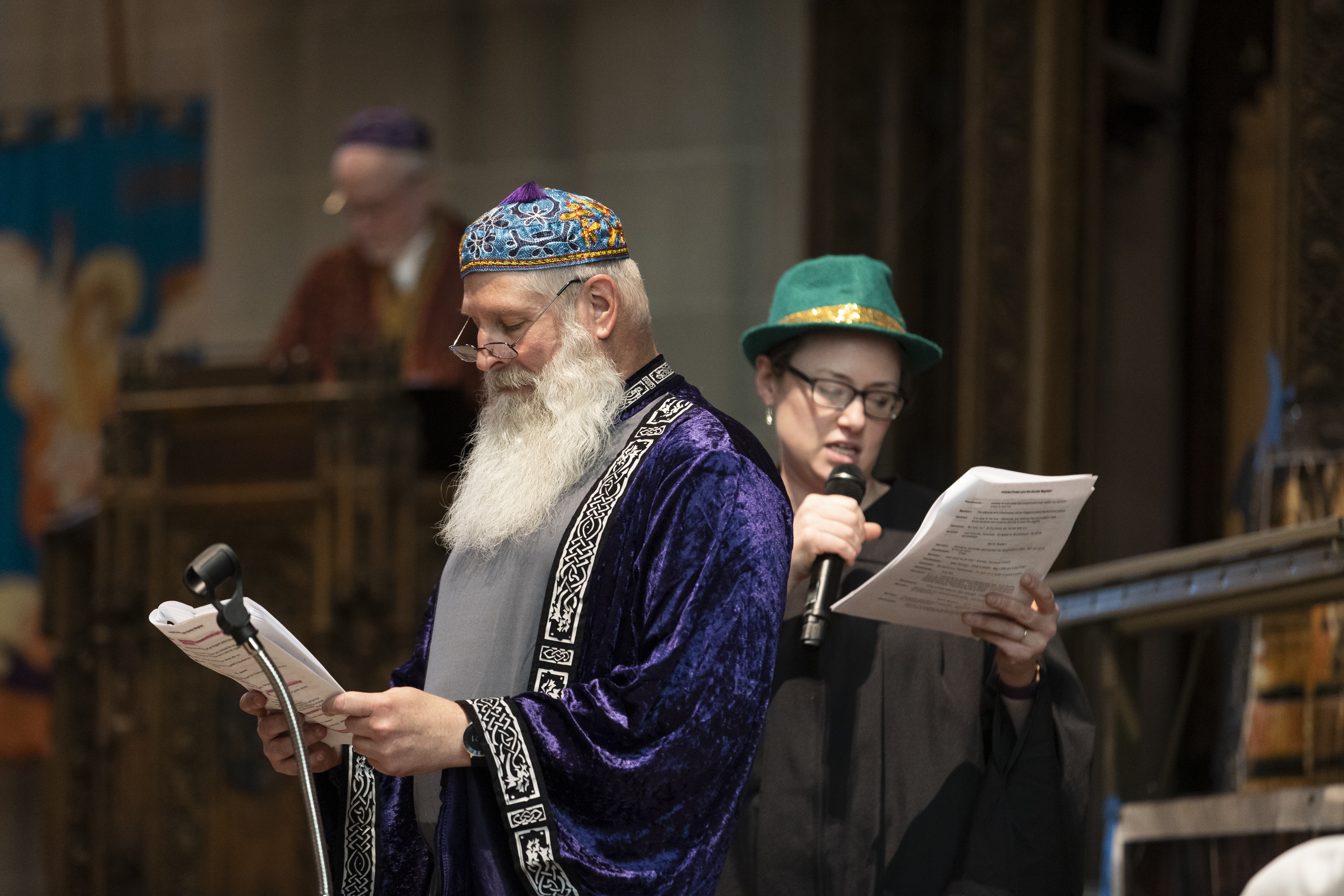 The Tree of Life and Rodef Shalom presented a Purim play at Calvary Episcopal Church on March 8, 2020. Calvary's Rev. Jonathon Jensen and the Rev. Neil Raman both had parts in the play.