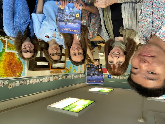 UCSC staff Daodao Hou, Judith Estrada, Anne Frank USA CEO, Lauren Bairnsfather, and NIOT's Patrice O'Neill join Aptos Jr High teacher Amy Fitzgerald in a discussion with students. The University of California Santa Cruz DEI office sponsored copies for all students of The Christmas Menorahs, a book by Janice Cohn about the story of Billings, MT children's response to hate against one of their classmates.