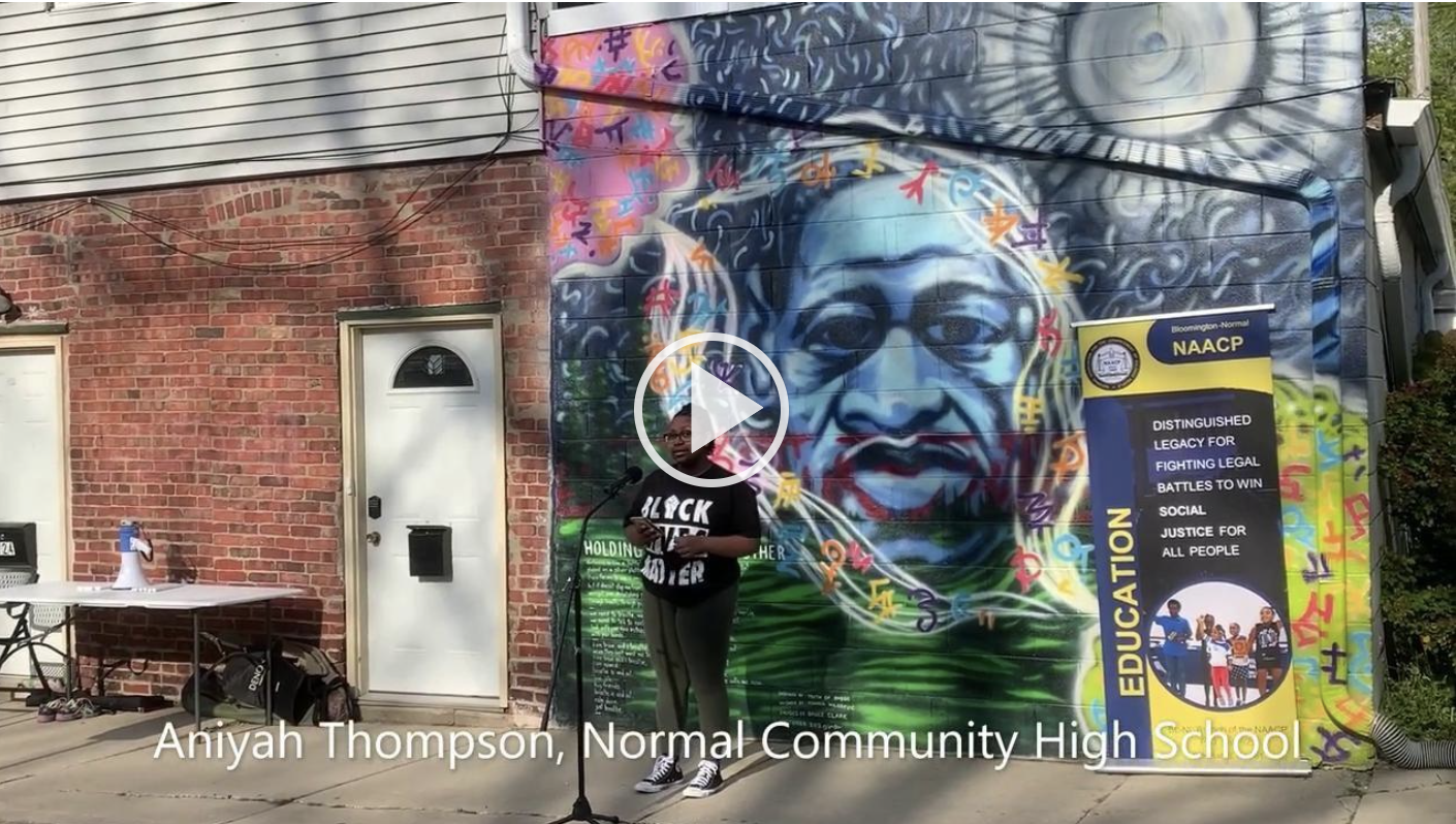 Aniyah Thompson and Bradley Ross Jackson, of Normal Community High School, and Jasmyn Jordan, of Normal West High School, share poems they wrote at a vigil organized by the Bloomington-Normal branch of the National Association for the Advancement of Colored People on Sunday, April 25 in Bloomington, IL.