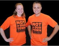 As part of their Not In Our Town campaign, Marshalltown, Iowa, created orange Not In Our Town T-Shirts to unify the movement and allow participants to show their support for the anti-bullying efforts in Marshalltown. The Not In Our Town community dons these shirts at events such as the Aug. 30, 2012 rally at the Marshall County Courthouse, and "orange-out" at a football game in September.