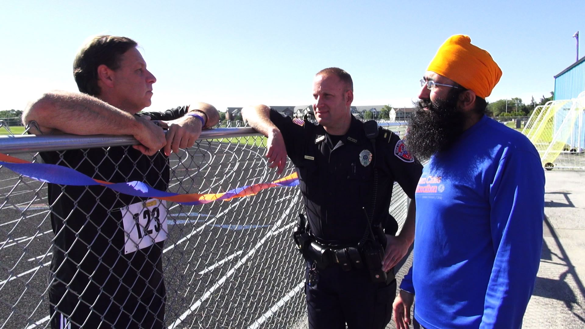 Oak Creek Officer Sam Lenda and Lt. Brian Murphy at the Chardi Kala 6K Memorial Run.