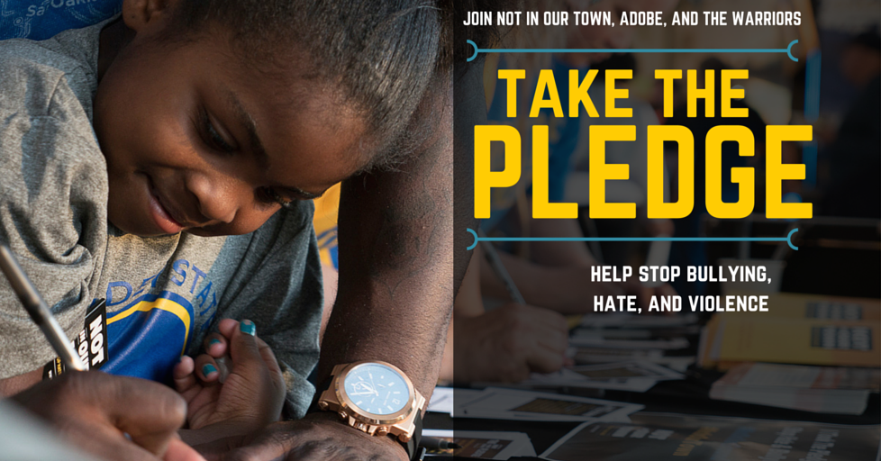 "I pledge to stand up to all forms of hate, bigotry, and bullying," said Golden State Warriors guard Shaun Livingston, at an event on February 29th, with hundreds of Bay Area students.