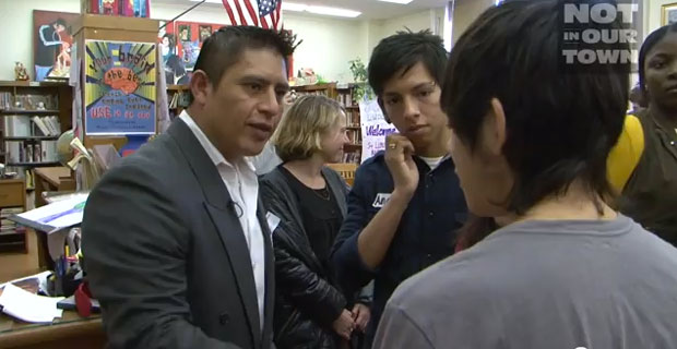 From Facing History teacher Julie Mann, who is screening the full-length documentary Not In Our Town: Light in the Darkness with her students at Newcomers High School in Queens, NY.